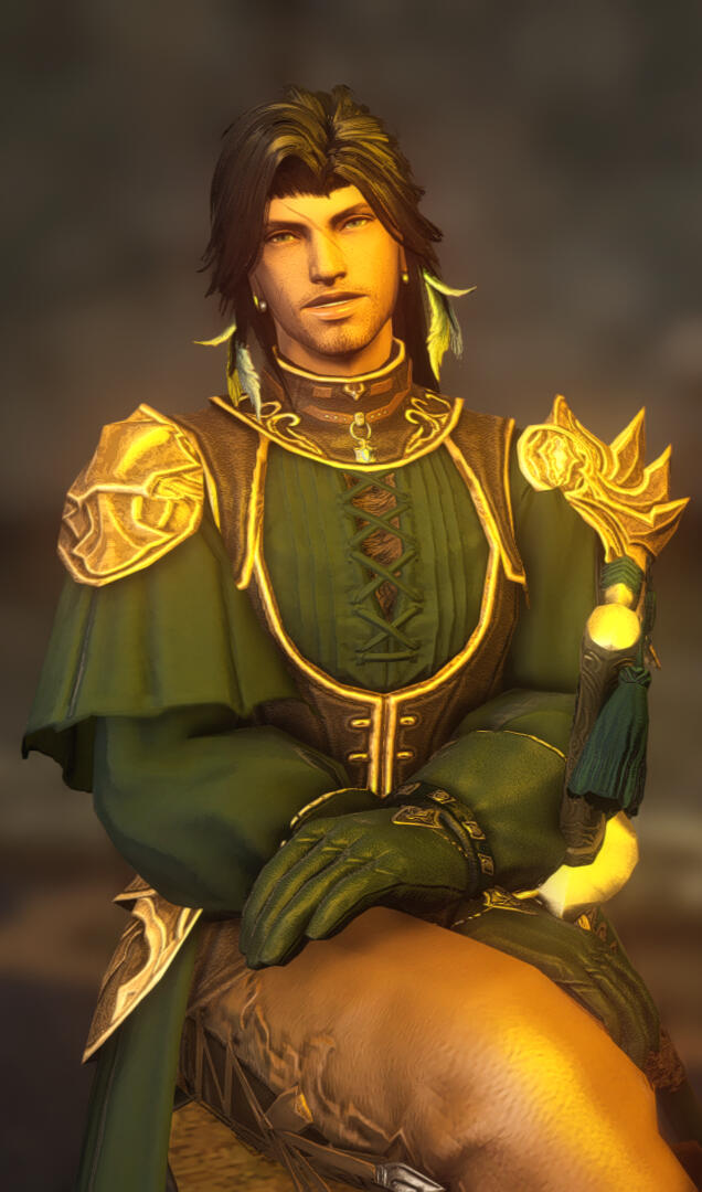 Born to a Duskwight conjurer and a Hyuran carpenter, it was from a young age when Piers made the decision to swear himself in service to the Adders, keen on protecting his homeland and, with boyish notions filling his head, becoming a hero.Twenty years of service has seen Piers dispatched across Eorzea, both as leve-dealer and as part of the Adders' forces. From White Wolf to Wood Wailer, his diligence had led him to command a small group of forces, a title he kept until an injury forced him to fall back to the wayside; rather than being demoted, he was merely transferred.Now, he continues to travel under the banner of the Adders, though he considers himself more of a recruiter and a consultant than anything of a soldier.
